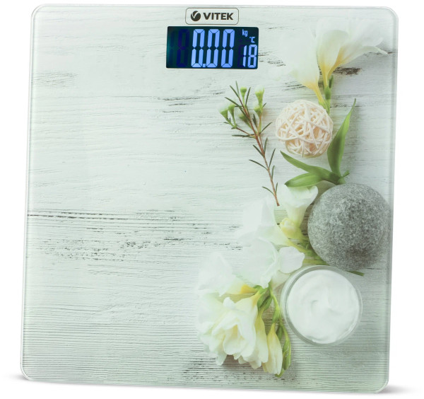 - Дополнительная информацияКонтролировать свой вес и таким образом следить за фигурой позволят электронные напольные весы VITEK VT-8077. Их платформа выполнена из закаленного стекла толщиной 6 мм и способна выдерживать до 180 кг. Весы имеют функции автоматического включения, выключения, а также обнуления результатов. Дисплей 75х35 мм с белой подсветкой показывает не только вес, но и температуру помещения, где находится прибор.