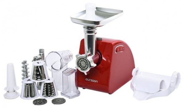 - Насадки: насадка-терка, насадка для приготовления колбас, насадка для шинковки, насадка для кеббе, диск для фарша