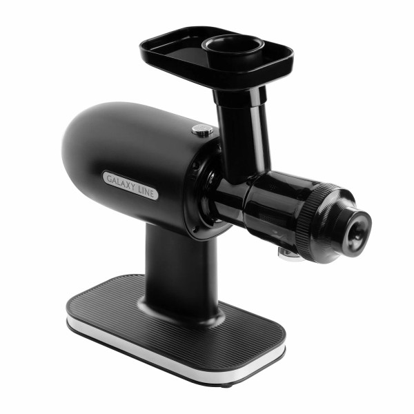 - Комплектация: Толкатель, лоток для продуктов, загрузочная горловина, уплотнитель, фиксатор, шнек, сетчатый фильтр, емкость для сока, емкость для жмыха, книга рецептов