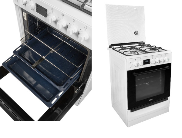 - Особенности конструкцииКрышка стеклянная. Материал решеток чугун. Съемное стекло дверцы духового шкафа. Подсветка духовки отдельная кнопка. Вращение вертила отдельная кнопка.
