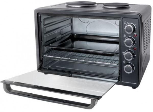 - Дополнительная информацияТаймер отключения до 60 мин. со звуковым сигналом. Внутренняя подсветка. Мощность духовки 2200 Вт. Мощность левой конфорки 1000 Вт./ диаметр 185 мм. Мощность правой конфорки 600 Вт./ диаметр 155 мм.