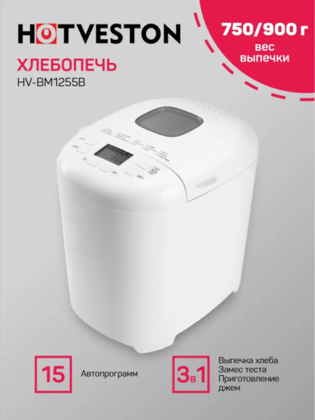 - Программы: замес теста, йогурт, выпекание, классический хлеб, молочный хлеб, мультизерновой хлеб, мультипекарь, французский хлеб, цельнозерновой хлеб, экспресс-выпечка