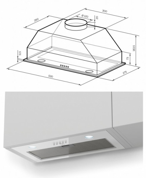 - Диаметр патрубка воздуховода: 120 мм