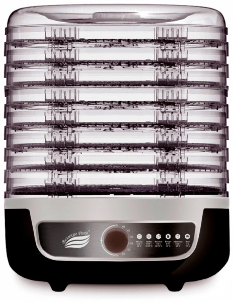- Дополнительная информацияМощность 600 Вт, 8 тонированных поддонов (2 из которых со съемной сеткой), что дает возможность устанавливать емкости для приготовления йогурта ( до 9 стеклянных баночек). 2 рабочих объема. Диаметр поддонов 33 см, высота до 40 мм. Сушилка сделана из первичного пищевого пластика, не шумит, имеет терморегулятор. Есть возможность выбора нужной температуры сушки от 35 до 70 градусов. Имеется встроенный вентилятор. 2 года гарантии. Рецепты внутри инструкции. Размер прибора: 345х360х355мм (ШхГхВ). Размер прибора в упаковке: 350х335х360мм (ШхГхВ). Вес нетто: 3,37 кг. Вес брутто: 4кг. Класс защиты от поражения электрическим током II.