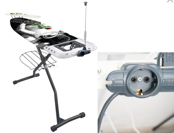 - Дополнительная информацияПодставка для утюга. Подставка для парогенератора. Полка для белья. Гладильный рукав. Встроенная розетка. Кронштейн для провода. Вешалка для рубашек. Съемный чехол. Противоскользящие насадки. Максимальная нагрузка на рабочую поверхность 25 кг.