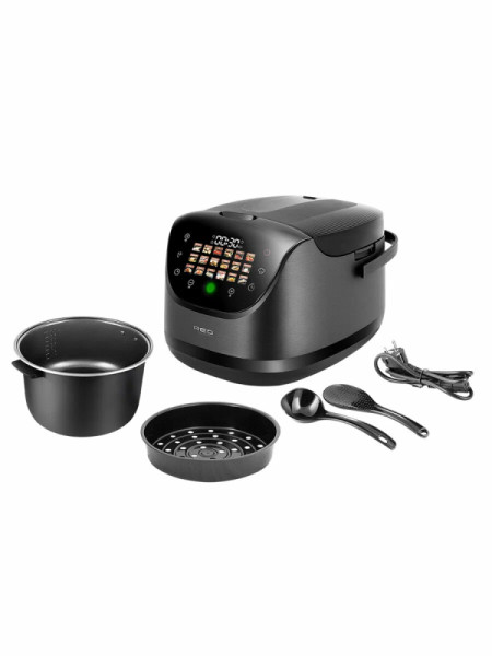 - Особенностиантипригарное покрытие чаши, внутренняя крышка, дисплей, регулировка времени приготовления, регулировка температуры, чаша с ручками